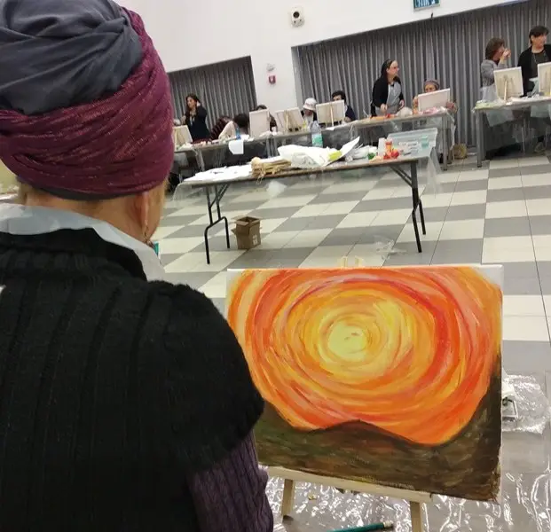 צבעים מוסיקה וחגיגה של אור מסיבת ציור מיוחדת וחוויתית להזכר שאנחנו אור ולצייר ציור יחודי כל משתתפת מציירת ציור בהדרכה של רות ונטורה ממש מההתחלה, שלב אחר שלב ועד להצלחה גם אם לא נגעת במכחול מאז הגן. ציור בצבעי אקריליק על קנווס, ציור מובנה, מודרך, מכוון תוצאה. מציירים בצבעי אקריליק על קנווס וכל אחת יוצאת עם ציור שהיא ציירה